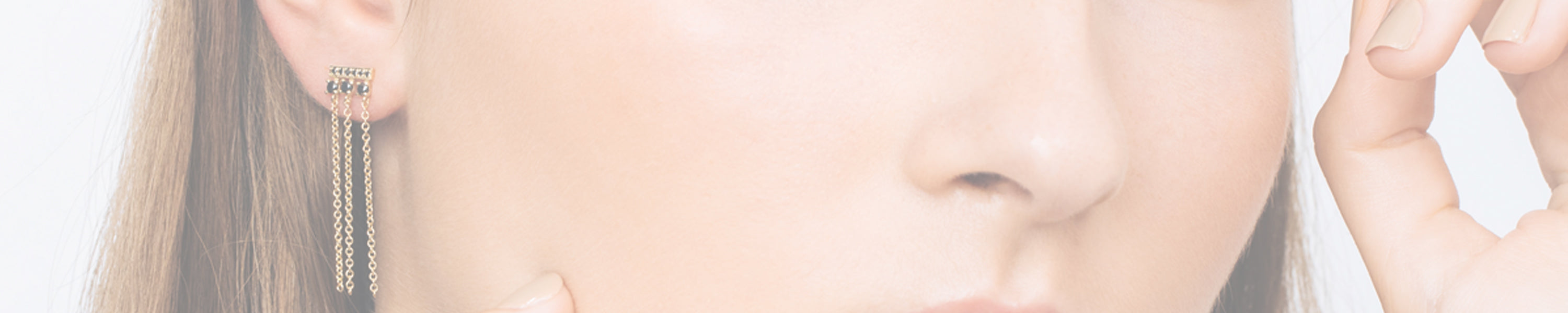 Small gold hoop earrings studded with a black diamond, close to the ear